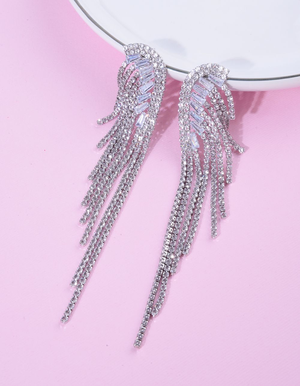 Сережки довгі із ланцюжків зі страз