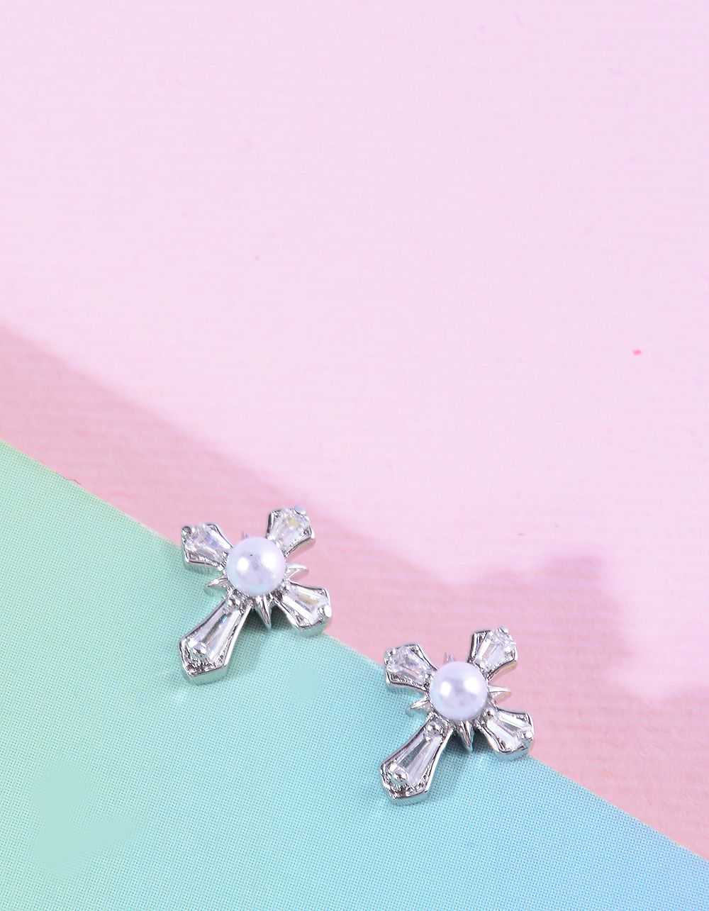 Сережки пусети у вигляді хреста з перлиною