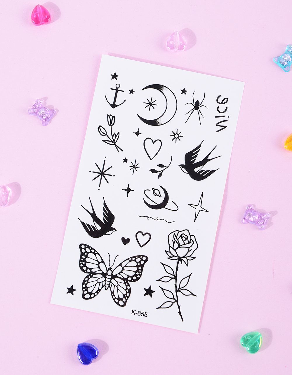Татуювання тимчасове у вигляді метелика та птаха з зіркою