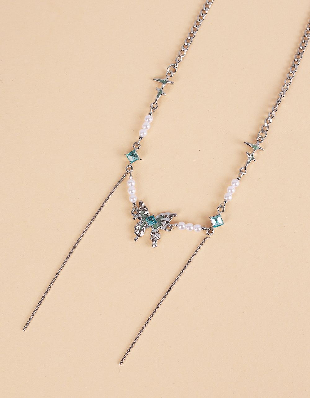 Підвіска на шию із перлин з кулоном у вигляді метелика