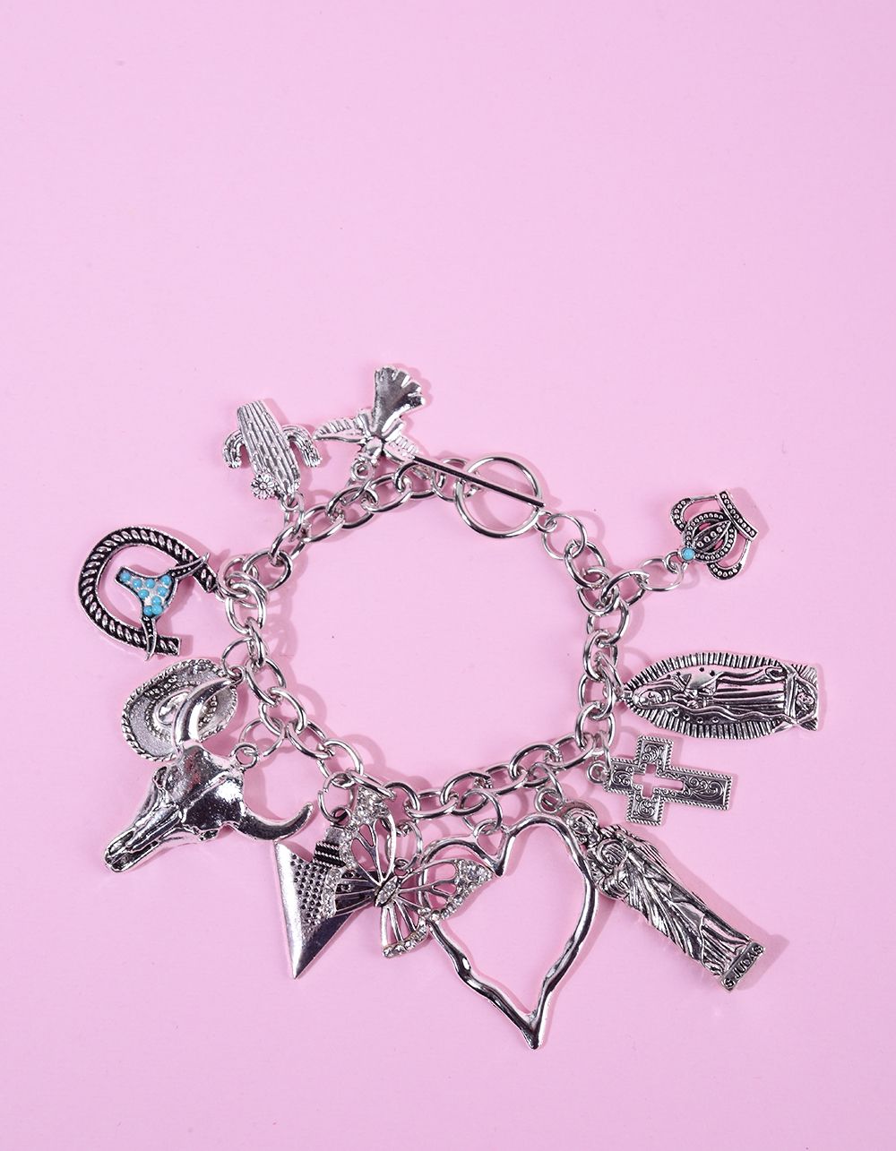 Браслет на руку із ланцюжка з підвіскою у вигляді метелика та серця з короною