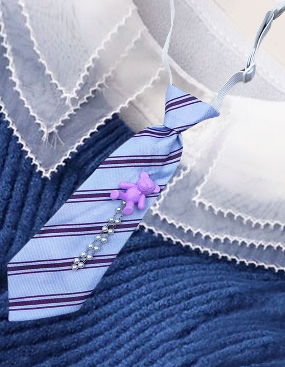 Краватка у смужку з ведмедиком та ланцюжка із перлин