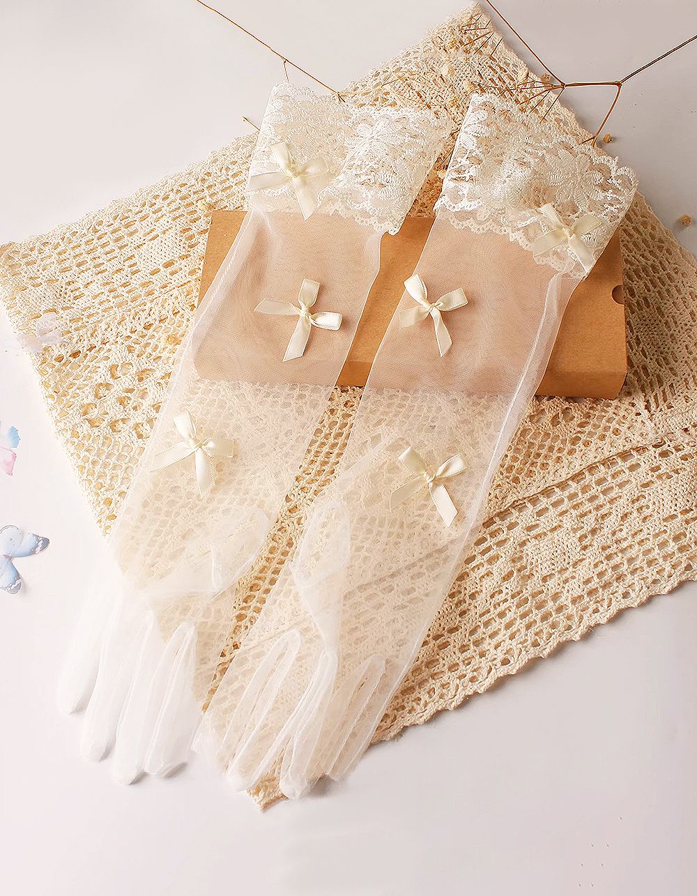 Рукавички мереживні з бантом