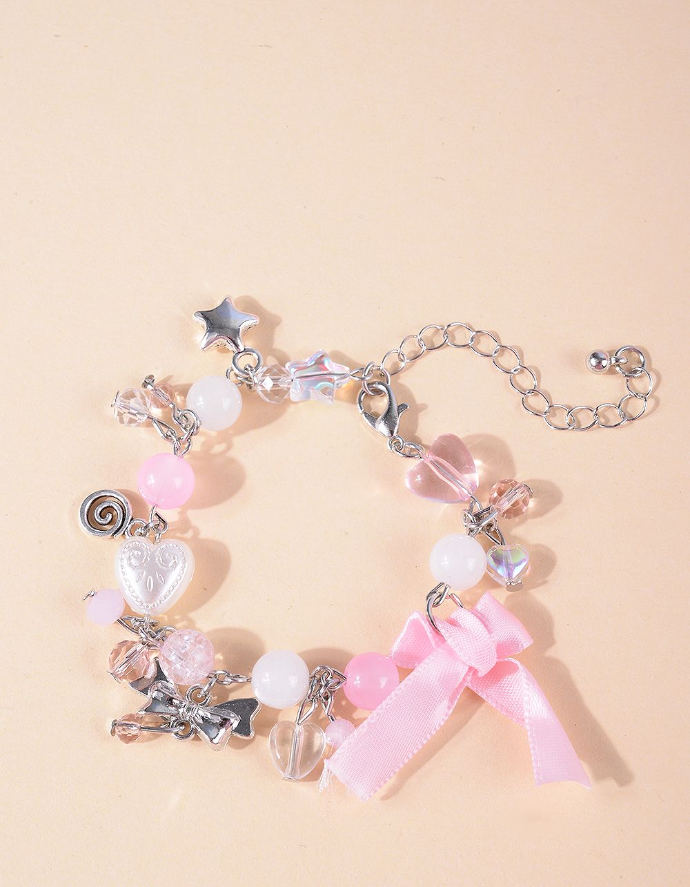 Браслет на руку з серцем та бантом з перлинами