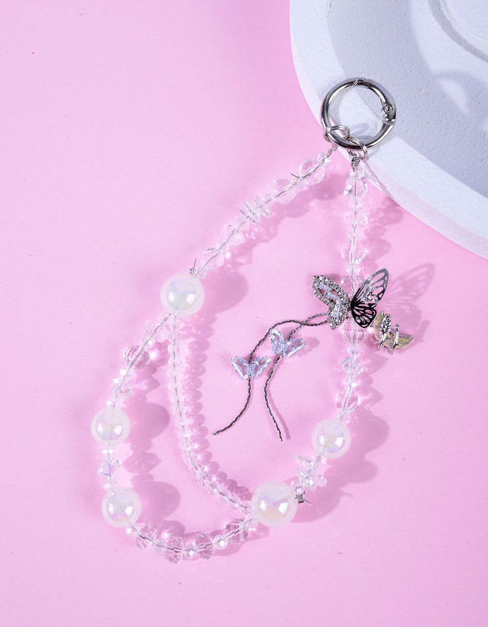 Брелок на сумку з метеликом та перлинами