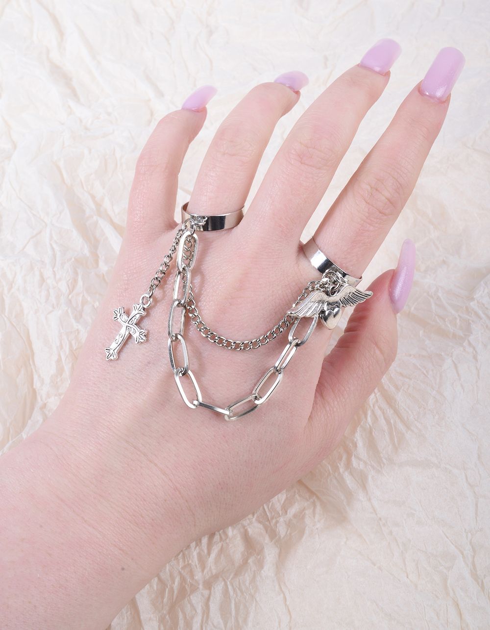 Кільце подвійне з хрестом на ланцюжках