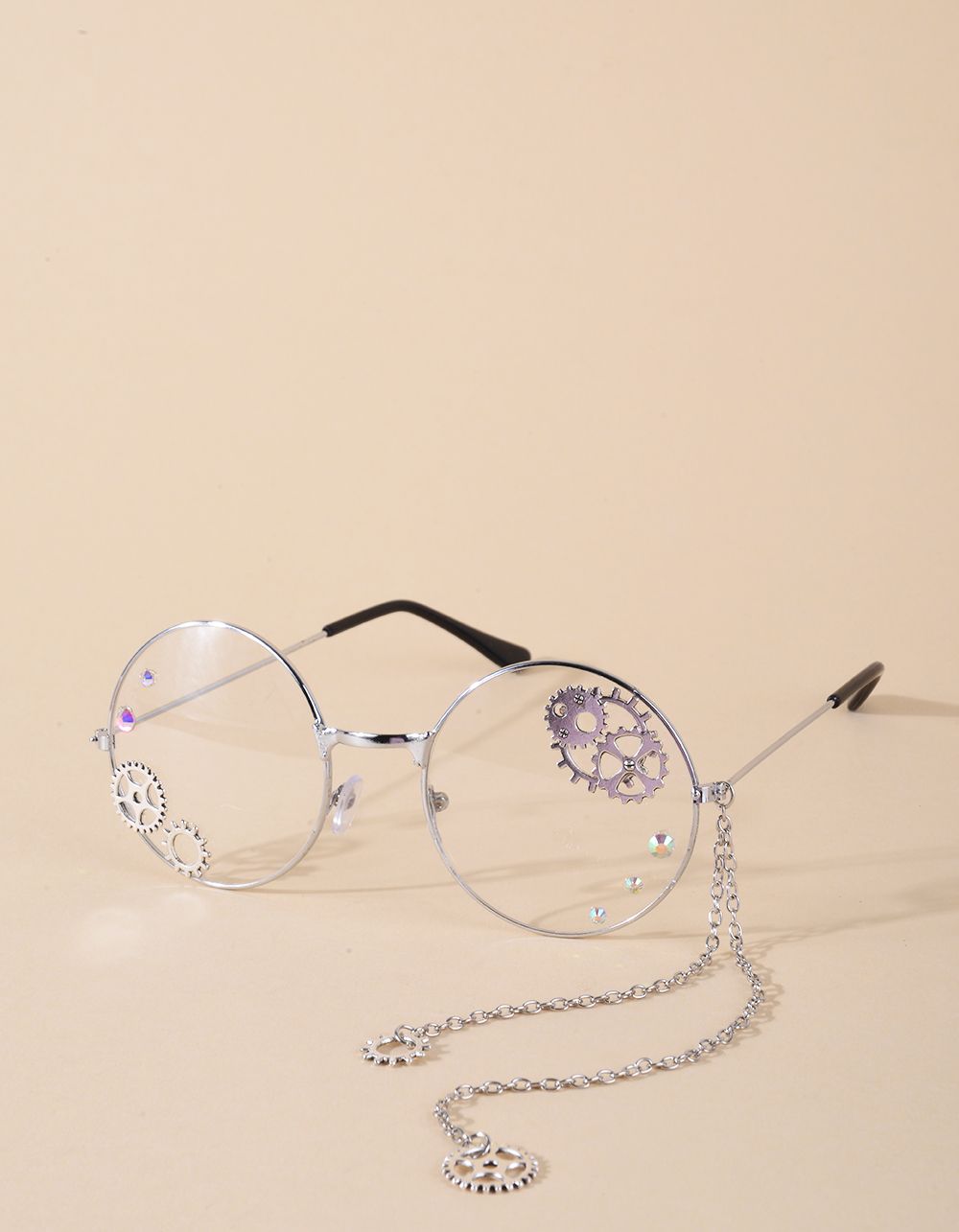 Окуляри іміджеві круглі з ланцюжком та фурнітурою на лінзах