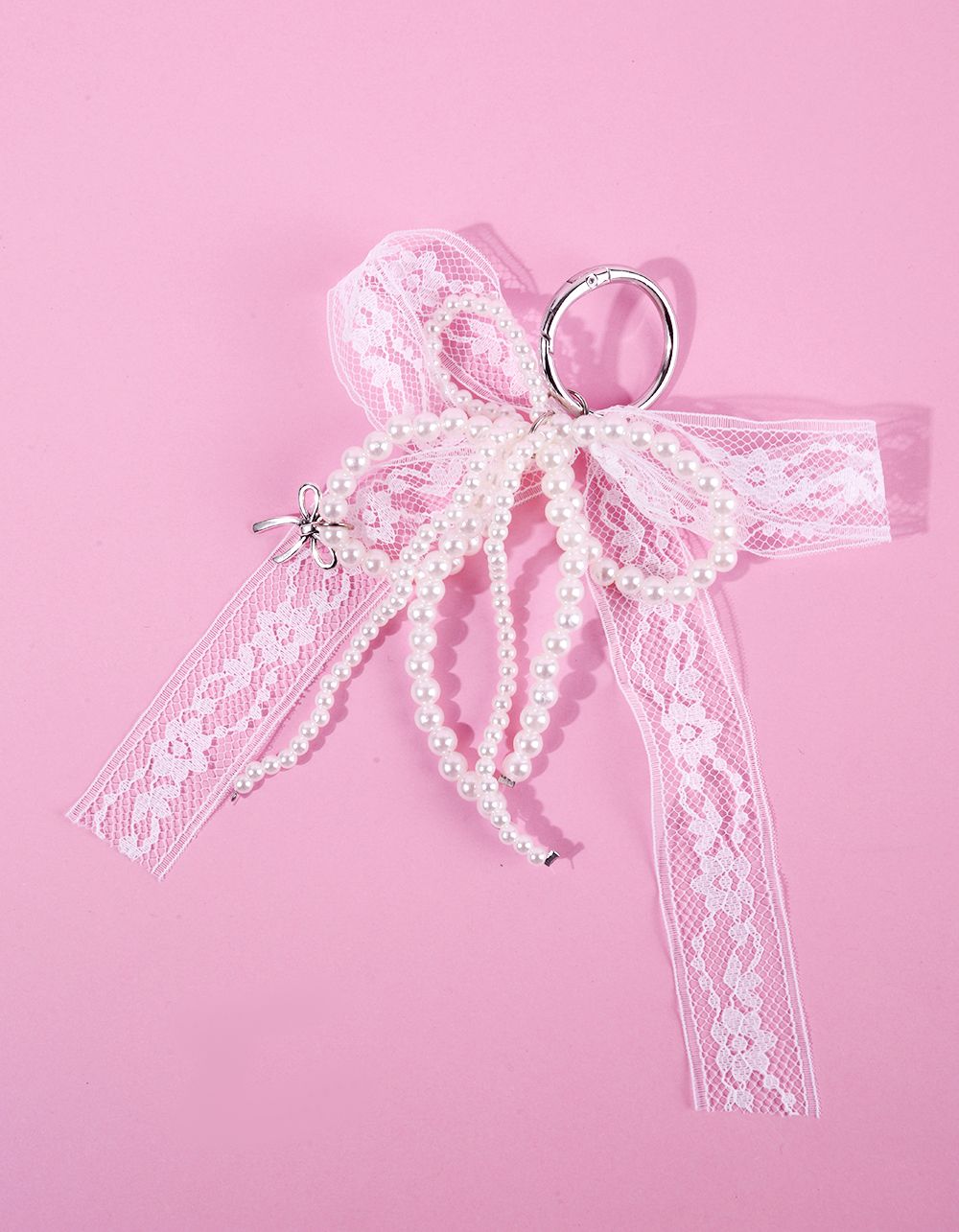 Брелок на сумку у вигляді мереживного банта з перлинами